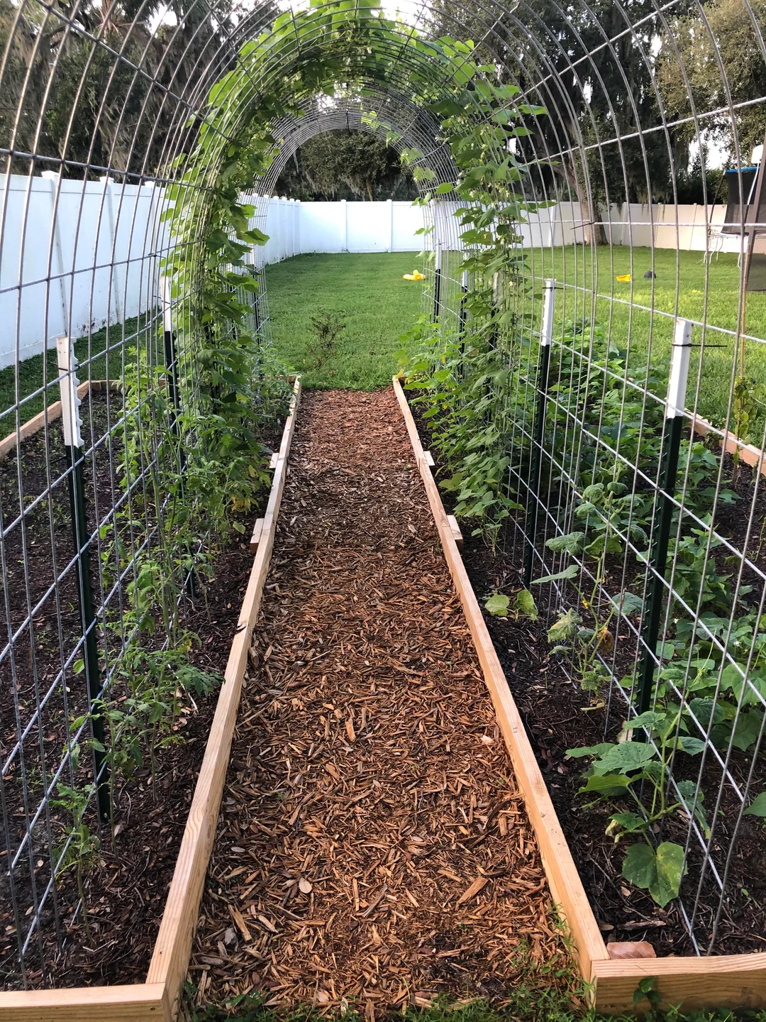 Вьющаяся фасоль может достигать от 1,5 до 3 метров в высоту. Если вы выращиваете её на панельной или обелисковой решётке, которая недостаточно высокая для такого роста, вы можете направить плети вниз, как только они достигнут вершины. Арочные решётки должны быть достаточно высокими, чтобы лоза могла перекинуться через верхушку при необходимости. Однако для сбора урожая сверху может понадобиться лестница!